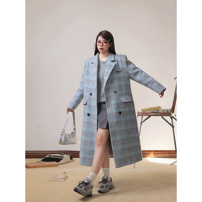 淘宝张大人订制大码女装优惠券,优惠券,张大人大码女装胖妹妹mm复古优雅气质保暖蓝格纹翻领长款大衣新款优惠券