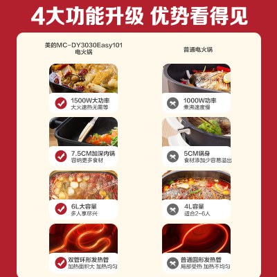 美的电火锅锅家用多功能一体式电热锅电炒锅电煮锅电锅不粘鸳鸯锅