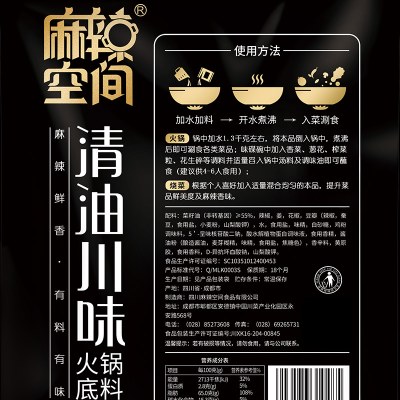 当前位置:首页-火锅-麻辣空间川味清油火锅底料220g小包装麻辣烫调味料四川成都特产