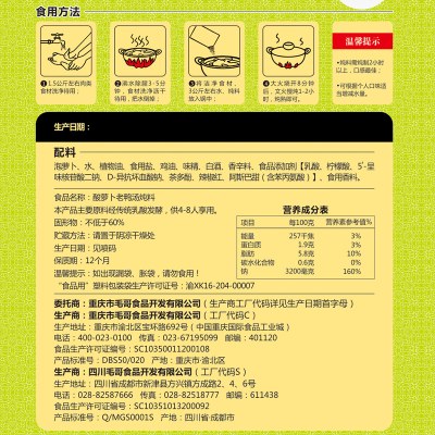 毛哥酸萝卜老鸭汤炖汤调料350g*5袋清汤火锅底料重庆特产煲汤佐料