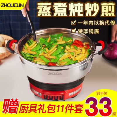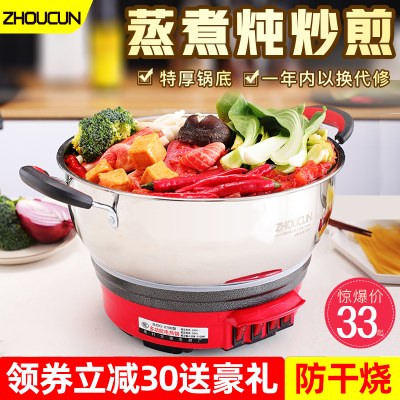 电锅多功能家用电热锅火锅电炒菜锅煮锅宿舍小蒸煮炖炒煎一体式锅