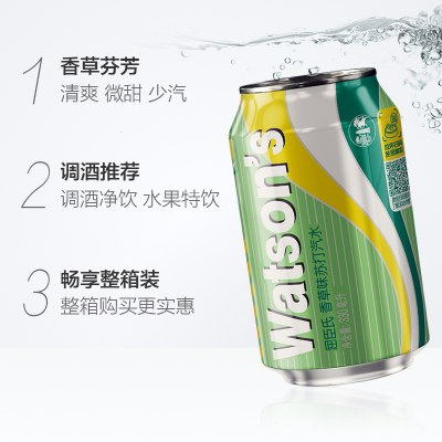 屈臣氏香草味苏打汽水330ml*24罐整箱碳酸饮料苏打水气泡水