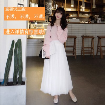 2021秋冬季新款半裙冬裙a字高腰蓬蓬裙大摆网纱裙半身裙子长裙女