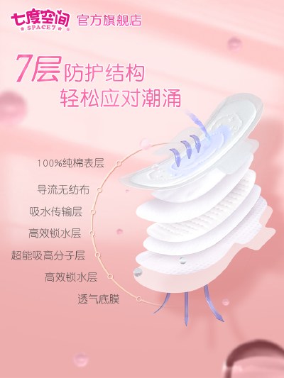七度空间卫生巾少女纯棉卫生巾245mm日用姨妈巾80片超薄透气干爽