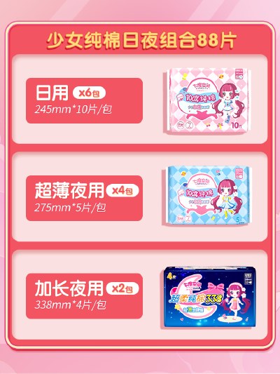 当前位置:首页-卫生巾-七度空间少女纯棉干爽透气卫生巾日夜组合姨妈巾90片官网卫生棉薄