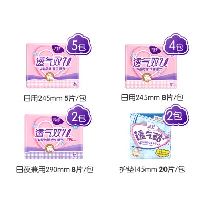 当前位置:首页-卫生巾-洁婷卫生巾棉柔日用姨妈巾双U组合混合套装整箱批发女旗舰店官网