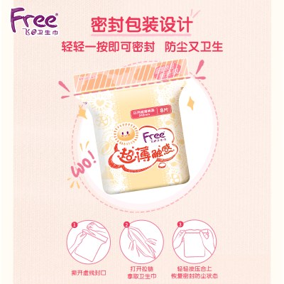 Free日用卫生巾亲肤棉柔超薄透气女神姨妈巾批发整箱10包 80片