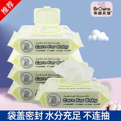 当前位置:首页-湿巾-布朗天使婴儿湿巾宝宝无酒精湿纸巾手口专用擦屁股80抽带盖5大包