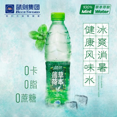 蓝剑薄荷水无汽0脂0卡天然草本饮料555mlX20瓶/箱饮料