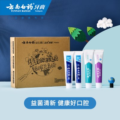 云南白药牙膏美白去黄去口臭清新口气益生菌套装家庭装官方旗舰店