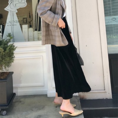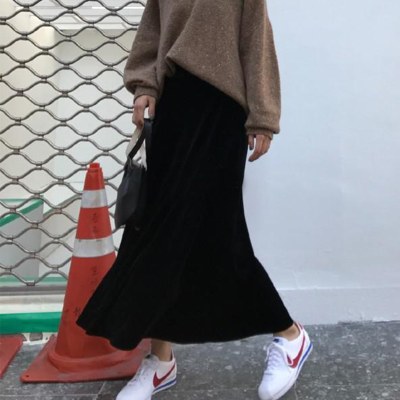 半身裙金丝绒丝绒大码女垂感显瘦遮垮秋冬配毛衣a字裙长裙裙子