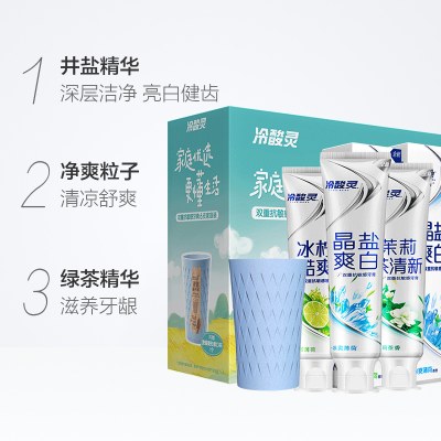 冷酸灵牙膏家庭装780g*1套双重抗敏美白牙齿软垢送漱口杯清新
