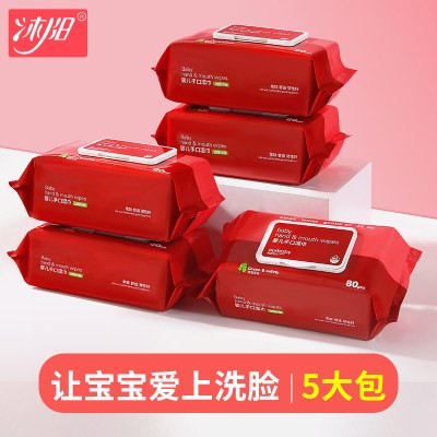 沐阳巨大巨厚婴儿湿巾纸新生宝宝手口专用80抽5包家庭实惠大包装