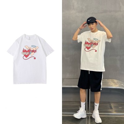 夏装短袖t恤男女2022年新款印花原宿港风chic短袖ins简约上衣情侣