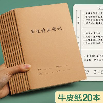 20本玛丽小学生家庭作业登记本学生作业记录本牛皮纸彩色记作业本记载抄作业本子小学生儿童家校联系批发包邮