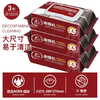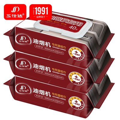 三仕达厨房湿巾纸吸油烟机清洁去油污湿纸巾无纺布抽取式40片翻盖