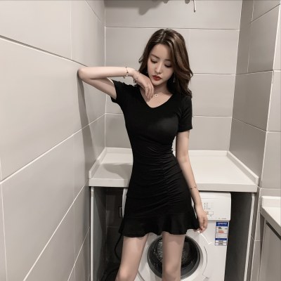 当前位置:首页-显瘦裙-有女人味的连衣裙v领修身显瘦收腰紧身包臀短裙显胸性感鱼尾裙夏