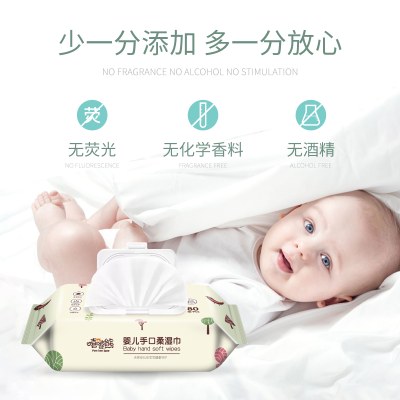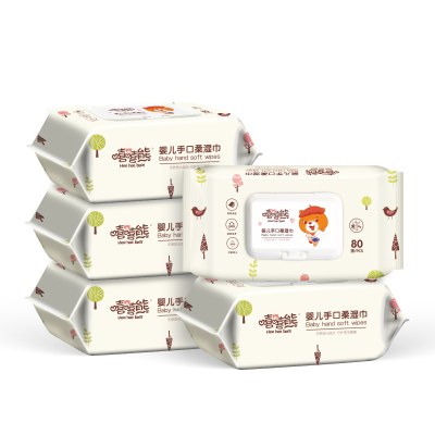嘻嘻熊新生婴儿宝宝儿童手口专用湿巾带盖家用小包随身装80抽5包