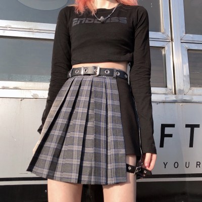 黑暗系朋克jk百褶裙短裙春夏季大码胖mm绑腿环不规则半身裙裤裙