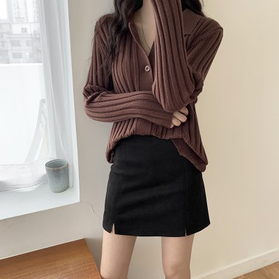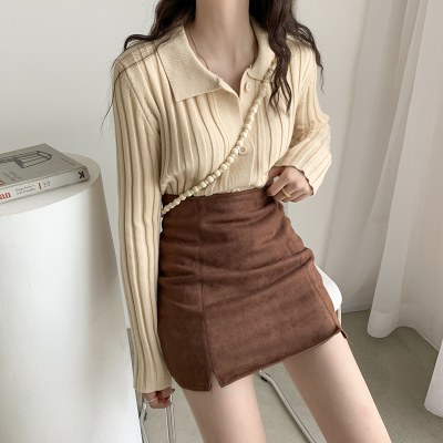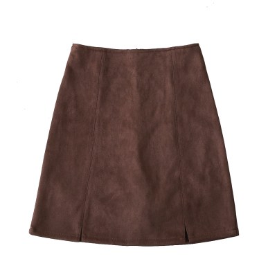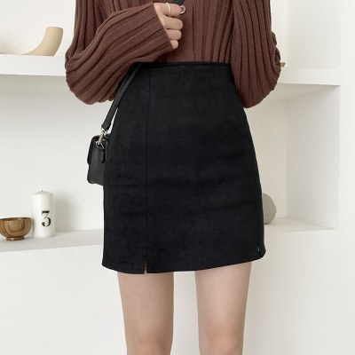 高腰开叉半身裙女2021秋新款a字pu皮裙黑色鹿皮绒包臀短裙一步裙