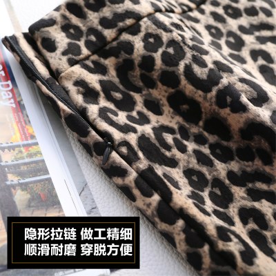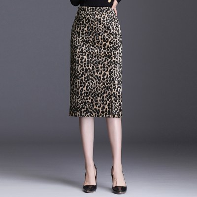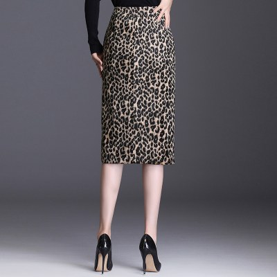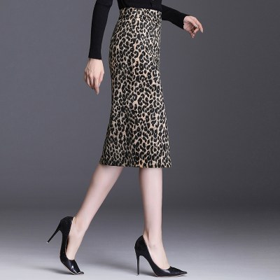 豹纹包臀半身裙女中长款2022春秋显瘦一步裙斑马纹开叉裙工装裙子