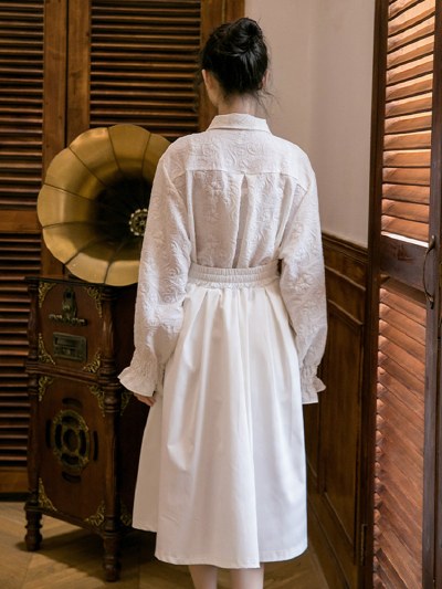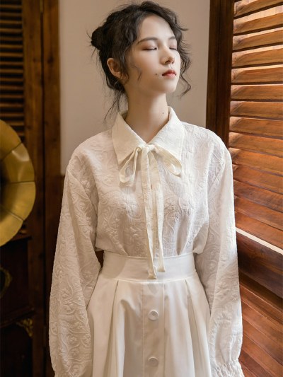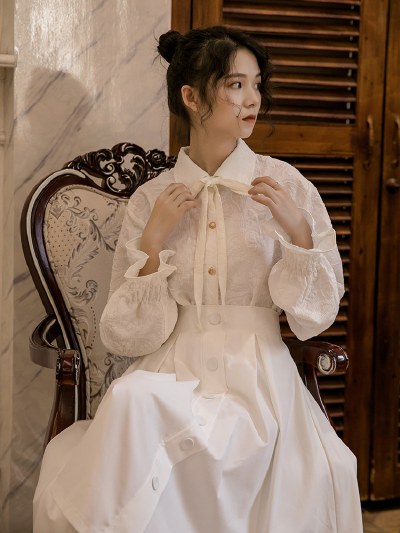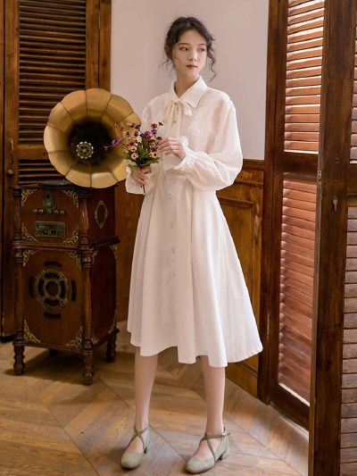 低俗小説 心中的善丢了 复古蝴蝶结衬衣+公主半身中长裙两件套仙