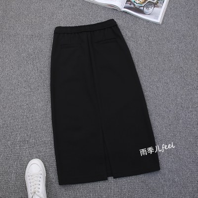 休闲半身裙女春秋直筒中长款黑色百搭高腰后开叉包臀弹力一步长裙