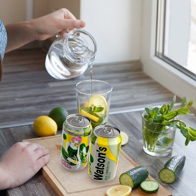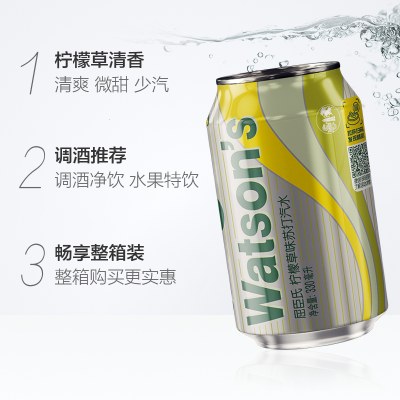 屈臣氏柠檬草味苏打汽水330ml*24罐整箱苏打水汽水饮料饮品气泡水
