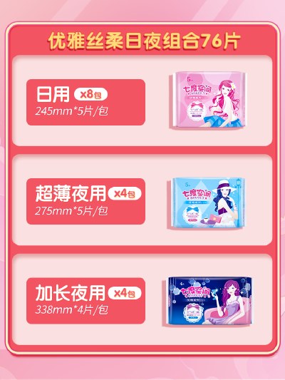 七度空间卫生巾女优雅姨妈巾日夜用组合正品76片旗舰店包邮女整箱
