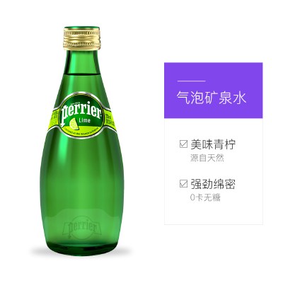 Perrier巴黎水青柠味饮料含气高端矿泉水气泡水玻璃瓶330ml*24/箱