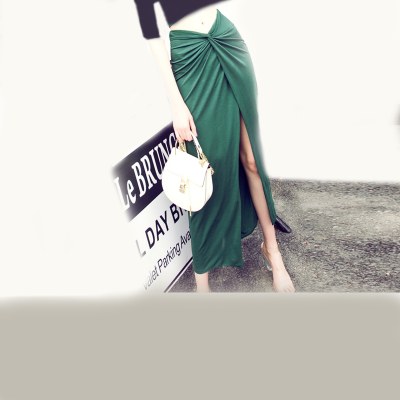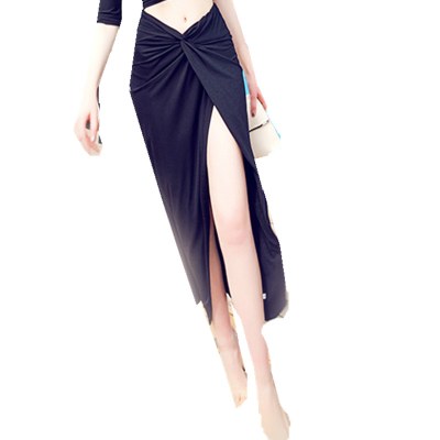 2022网红欧美性感弹力小心机显瘦露肚脐开叉褶皱不规则半身裙女