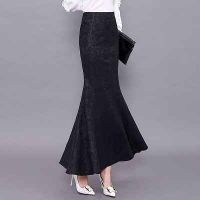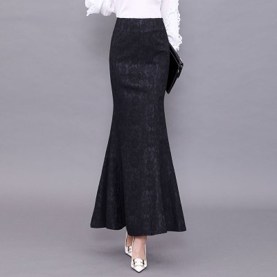 秋冬新款蕾丝半身裙包裙长裙大摆裙子修身显瘦黑色高腰包臀鱼尾裙