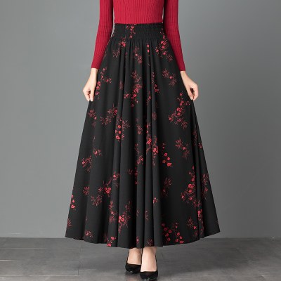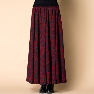 2022秋冬季新款复古印花半身长裙女高腰大摆跳舞裙女大码半身裙子