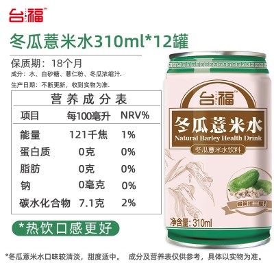 福建台福冬瓜薏米水310ml*12罐箱装网红饮品凉茶饮品送礼整箱饮料