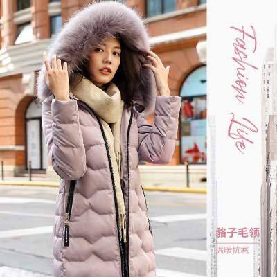 冰洁大毛领羽绒服2021年新款女中长款时尚修身显瘦韩版保暖外套