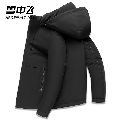 雪中飞2021秋冬新款基础保暖运动休闲男士立领连帽短中长款羽绒服